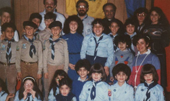 Notre groupe scout vit le jour, sous l’égide de Mgr Coriaty, de la paroisse St-Sauveur, qui cherchait un moyen de rassembler la jeunesse de la paroisse. La première réunion eut lieu le vendredi 9 mars 1984, au Centre Communautaire Melkite de Montréal. Ce soir là, nos trois uniques animateurs à l’époque eurent le plaisir d’animer un impressionnant total de huit jeunes. À cette époque, il n’y avait que des louveteaux et des jeannettes. De plus, l’uniforme était bien différent de celui d’aujourd’hui. Les filles portaient des jupes et les garçons des bérets! Par la suite, les jupes firent place aux pantalons bleus, qui furent eux-mêmes remplacés par des pantalons couleur kaki, beaucoup plus confortables, aujourd’hui remplacés par des pantalons de couleur anthracite moins confortables.